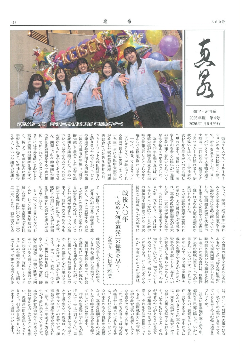 年5回(5月、7月、10月、1月、3月)学園が発行している「恵泉」誌のなかの同窓会のページ「つばめの巣」では、同窓会の活動、お知らせ、会員からの投稿、同窓生へのインタビューなどを掲載しています。