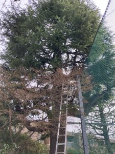 学園では春に向けてヒマラヤスギの剪定が行われていました。